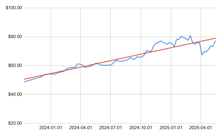 As of May 2025, a linear regression model on 2 years of XUSF timeseries data produces an r-squared of 0.88, indicating a strong upward growth trend in this ETF, with 88% of its price variations explained simply by the passage of time. Keep in mind however, that past performance does not necessarily guarantee future trends will continue the same way.